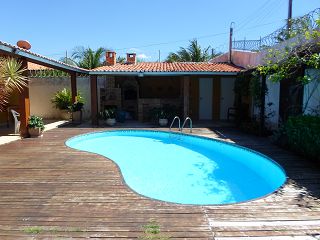 São 03 quartos, sendo 01 suíte máster, mais uma casa de morador com 02 quartos, 01 garagem coberta, mais 03 vagas não coberta, toda mobiliada, Piscina, deck, churrasqueira, forno de pizza, amplo jardim.